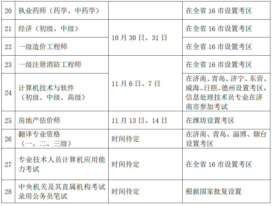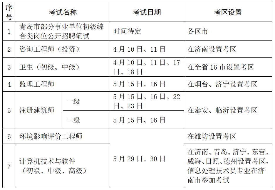 附件:2021年度青島市人事考試工作計劃及考區(qū)安排表