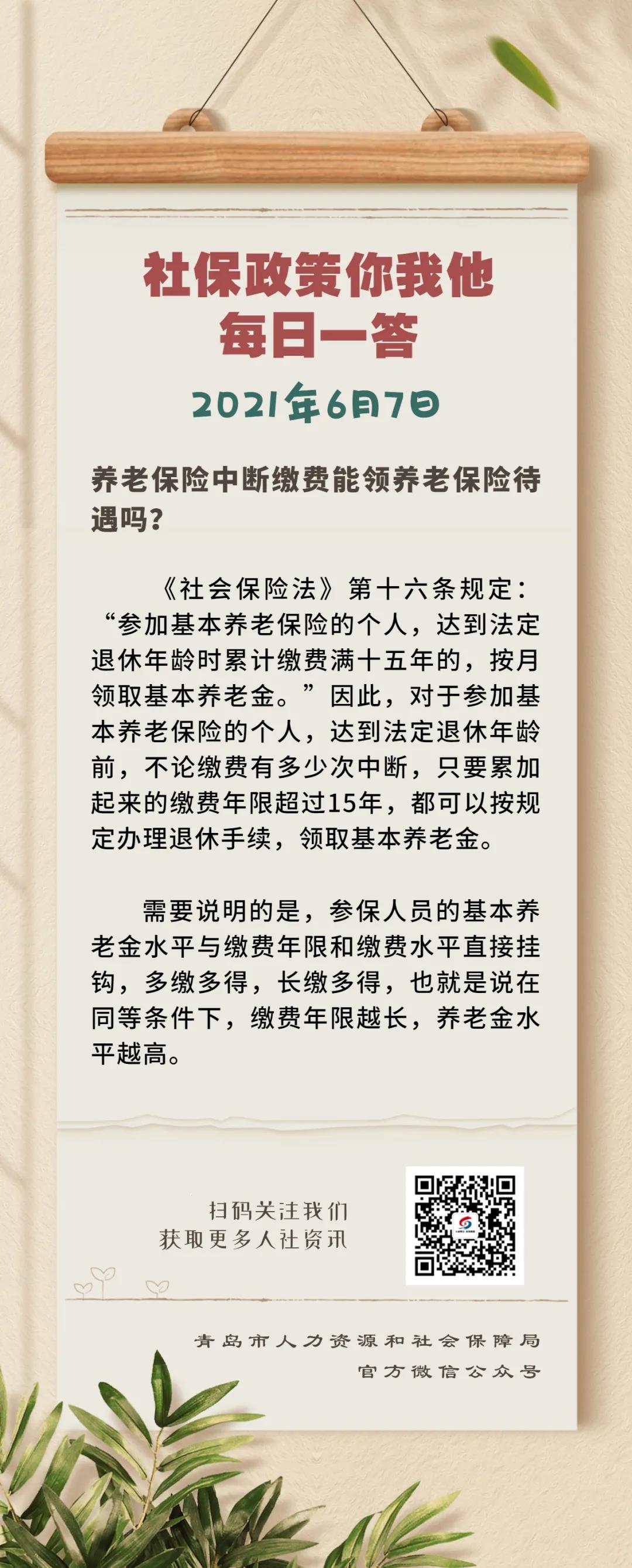 社保政策你我他——養(yǎng)老保險中斷繳費能領養(yǎng)老保險待遇嗎?