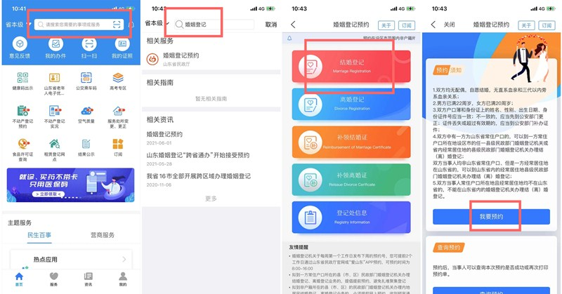 “愛山東”APP上線“婚姻登記預(yù)約”服務(wù),只要準新人雙方中有一位是山東戶籍內(nèi)地居民,便可在“愛山東”APP上選擇省內(nèi)戶籍所在地縣級民政部門婚姻登記機關(guān),提交結(jié)婚登記預(yù)約申請,提前拿到“婚姻號碼牌”。