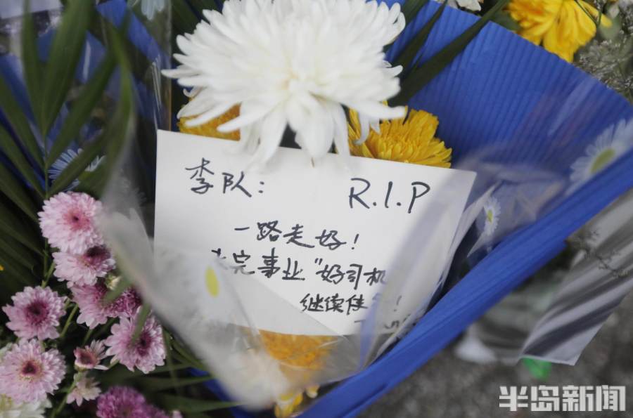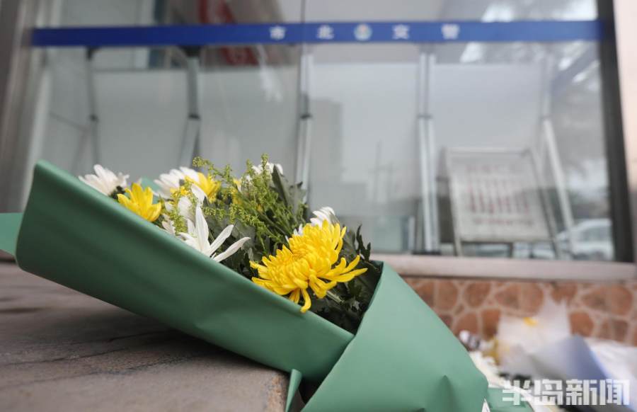 10月7日下午,市北區(qū)紹興路遼源路交警中隊(duì)門(mén)前,擺放了十幾束市民自發(fā)送來(lái)的鮮花,上面寫(xiě)著各種話(huà)語(yǔ),祭奠逝去的交警李涌,這個(gè)中隊(duì)是他曾經(jīng)工作過(guò)的地方,一些市民以這種方式來(lái)祭奠這位交警英雄“涌哥”!