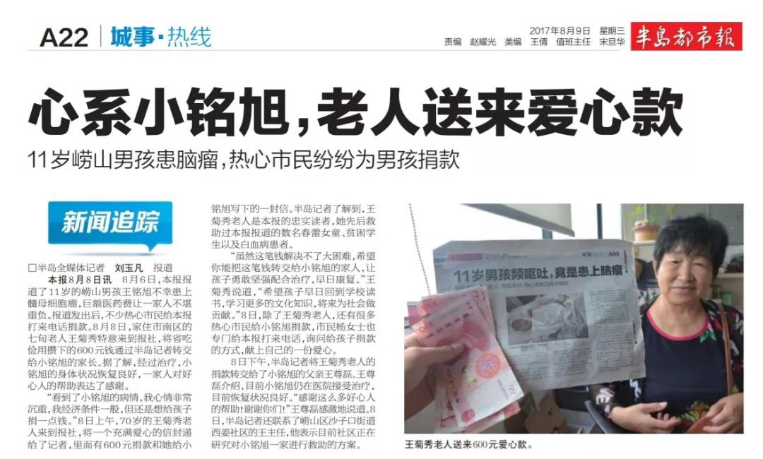 十幾年來,我先后捐助過貴州、云南、四川、臨沂、西藏日喀則、青島等地的貧困學子、殘疾病人、特困家庭等,捐款的數(shù)額超過了7萬元。這些捐款都來自我的退休金。而我的退休金,不過是從最初的不到2000元,漲到現(xiàn)在的4000多元。