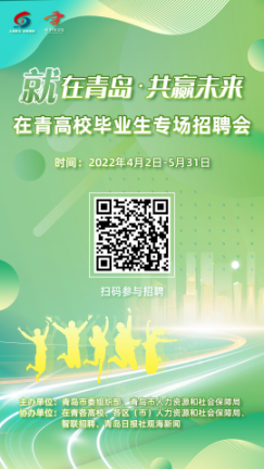 掃描活動(dòng)海報(bào)二維碼進(jìn)入“‘就’在青島·共贏未來”在青高校畢業(yè)生春季專場(chǎng)招聘活動(dòng)主頁,點(diǎn)擊“云招聘”-選擇“綜合類專場(chǎng)招聘會(huì)”-搜索“職位”,參與招聘活動(dòng)投遞簡歷。