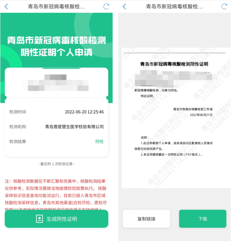 為方便市民更方便的獲取核酸檢測(cè)陰性證明,市大數(shù)據(jù)局緊跟數(shù)字青島建設(shè)要求以及“作風(fēng)能力提升年”工作部署,上線“青島市新冠病毒核酸檢測(cè)陰性證明個(gè)人申請(qǐng)”服務(wù),市民可在采樣點(diǎn)完成核酸檢測(cè)后,通過“核酸陰性證明”應(yīng)用自行查看下載最近一次核酸陰性證明報(bào)告,無需再前往采樣點(diǎn)現(xiàn)場(chǎng)打印,即可自行進(jìn)行核酸報(bào)告的查看下載。根據(jù)青島市防指辦最新工作要求,除國(guó)務(wù)院聯(lián)防聯(lián)控機(jī)制和省委領(lǐng)導(dǎo)小組(指揮部)等有明確規(guī)定之外,青島市核酸檢測(cè)陰性證明與核酸檢測(cè)報(bào)告(電子版和紙質(zhì)版)具有同等效力,可以作為青島市范圍內(nèi)核酸檢測(cè)結(jié)果查驗(yàn)憑證。