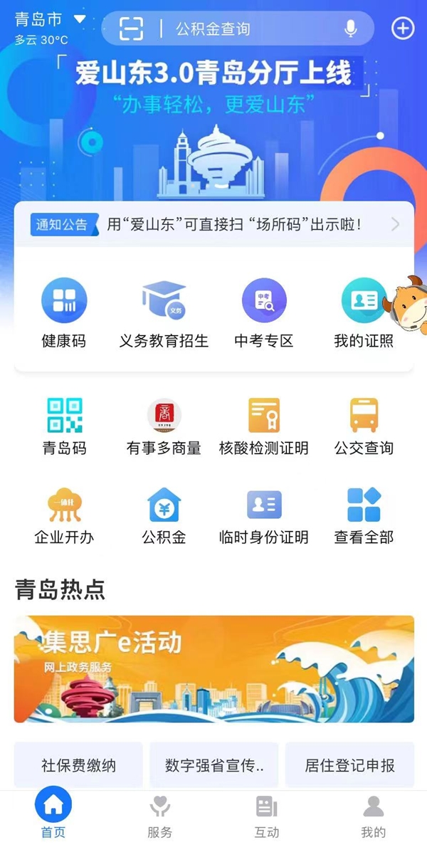 青島新聞網(wǎng)7月22日訊 2022年,青島市大數(shù)據(jù)發(fā)展管理局立足于用戶視角,拓展優(yōu)化政務(wù)服務(wù)掌上辦,不斷推動辦事服務(wù)由政府供給導(dǎo)向向群眾需求導(dǎo)向轉(zhuǎn)變,由被動服務(wù)向主動服務(wù)轉(zhuǎn)變,打造智慧便捷政務(wù)服務(wù),持續(xù)提升群眾獲得感,對“愛山東”青島分廳進(jìn)行了3.0版本的全面優(yōu)化升級。