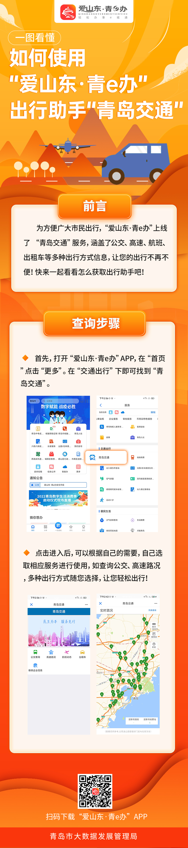 一圖看懂|如何使用“愛山東·青e辦”出行助手“青島交通”