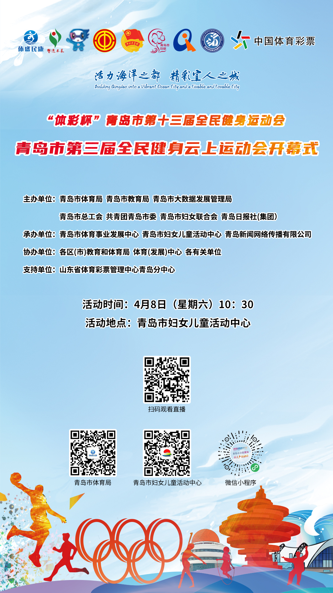 青島新聞網(wǎng)4月7日訊(記者 姜紅翠)為貫徹落實(shí)黨的二十大精神和習(xí)近平總書記關(guān)于體育的重要論述精神,加快構(gòu)建我市更高水平的全民健身公共服務(wù)體系,青島市第三屆全民健身云上運(yùn)動會將于4月8日在市婦女兒童活動中心盛大開幕。