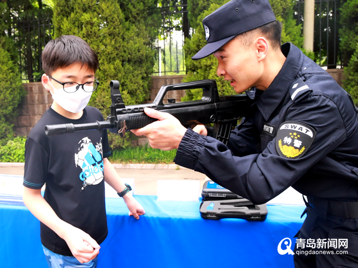 活動(dòng)現(xiàn)場(chǎng)還展示了特警防暴車、防暴盾牌、轉(zhuǎn)輪手槍、微型沖鋒槍、狙擊步槍等現(xiàn)代化警用裝備,在講解員的介紹下,通過近距離的感受,孩子們對(duì)各種裝備發(fā)生濃厚興趣,駐足停留,久久不愿離去。