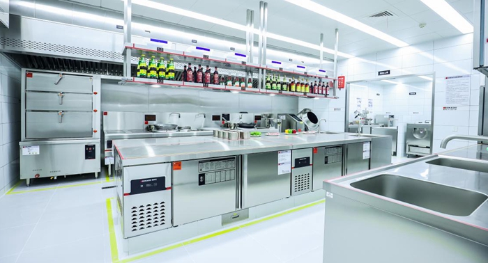 記者了解到,德瑪仕青島旗艦店獨具匠心,摒棄了傳統(tǒng)零散情景空間的設計理念,而是根據(jù)真實的單位廚房需求,嚴格遵循單位廚房標準,并融合資深大廚的理念精心打造。400平方米的空間被劃分為熱廚間、蔬菜加工間、肉類加工間、面點間、烘焙間、售賣間、水果涼菜間、消洗間等八大功能體驗區(qū),讓采購者每次進入都能感受到真實后廚帶來的感染力,找到最適合自己的廚房設備。
