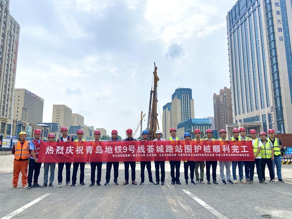 建設(shè)者慶祝薈城路站圍護(hù)樁施工完成