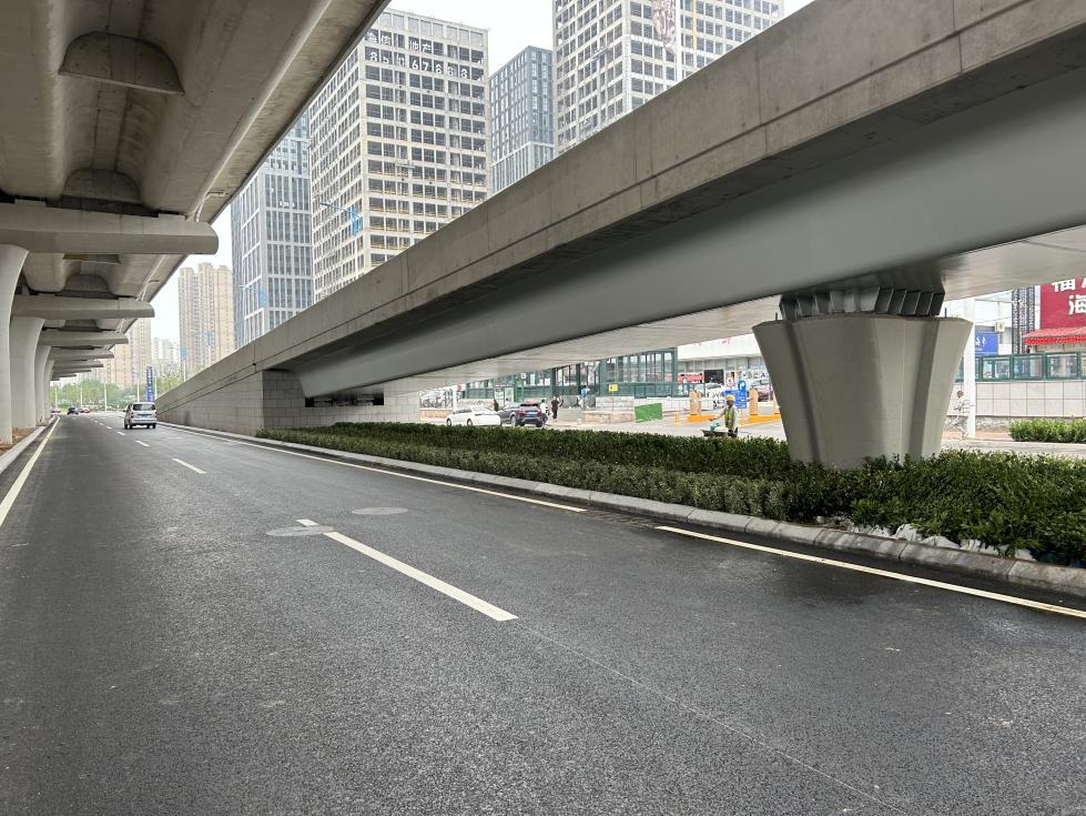 繼南半幅地下通道端午節(jié)前通車后,遼陽(yáng)路快速路(福州路-海爾路段)工程橋下輔路全線瀝青攤鋪也于日前完成。自2022年年底主線橋通車后,青島地鐵第一建設(shè)分公司僅用6個(gè)月時(shí)間完成了匝道橋及2.5公里橋下輔路的施工,實(shí)現(xiàn)了遼陽(yáng)路工程橋下輔路的順利貫通(下圖),比計(jì)劃通車時(shí)間提前了5個(gè)月。