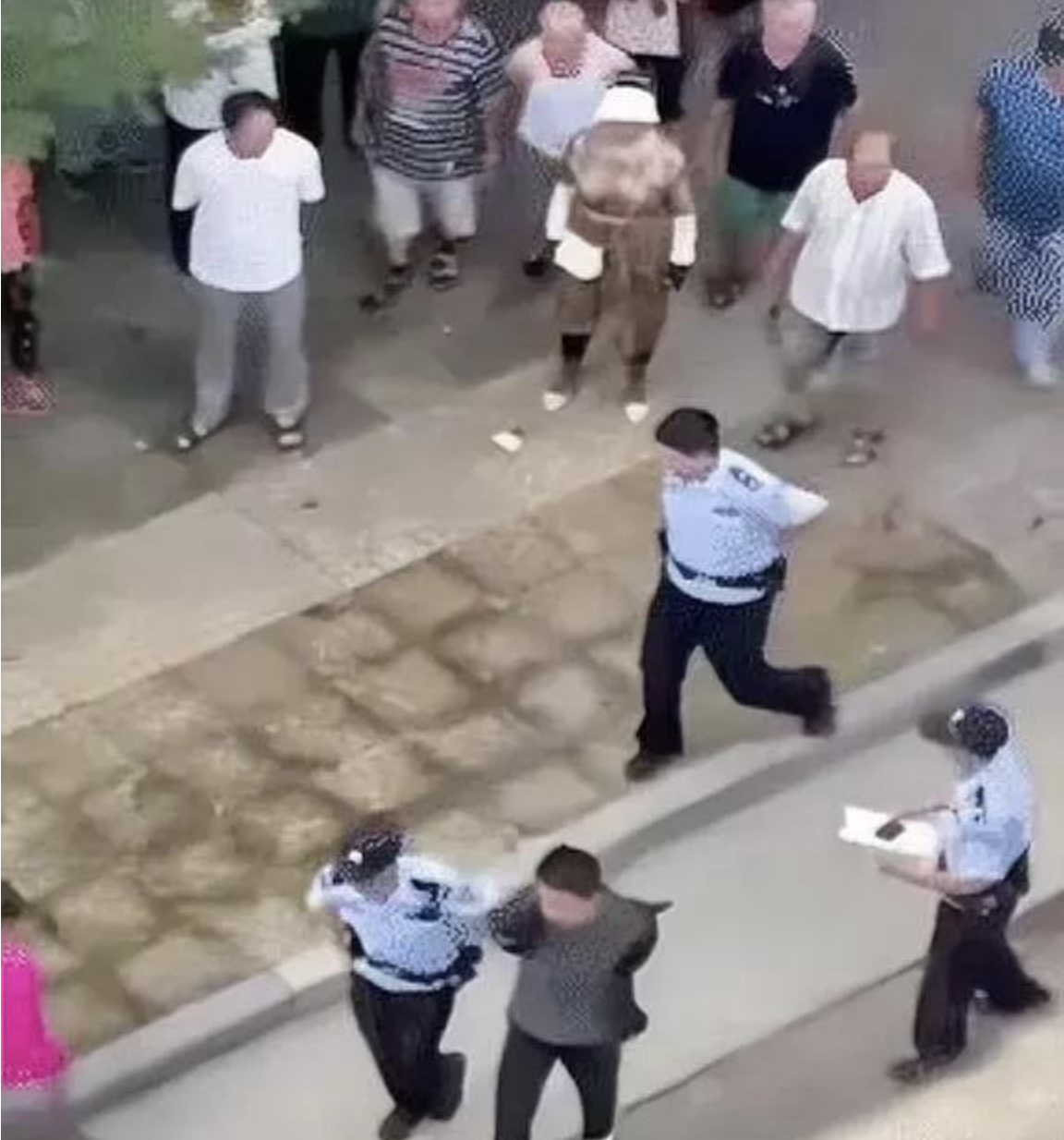 點開視頻后發(fā)現(xiàn),視頻中一名灰衣男子被警方控制帶至頂部標有“0519”字樣的警車。