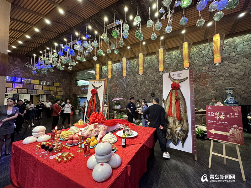 賓客紛至沓來、游人絡(luò)繹不絕地走進喬記漁莊,現(xiàn)場民間藝人展示著青島當?shù)氐拿袼坠に?,將?jié)日的氛圍傳遞給每一位來往食客,共同感受青島文化的魅力。