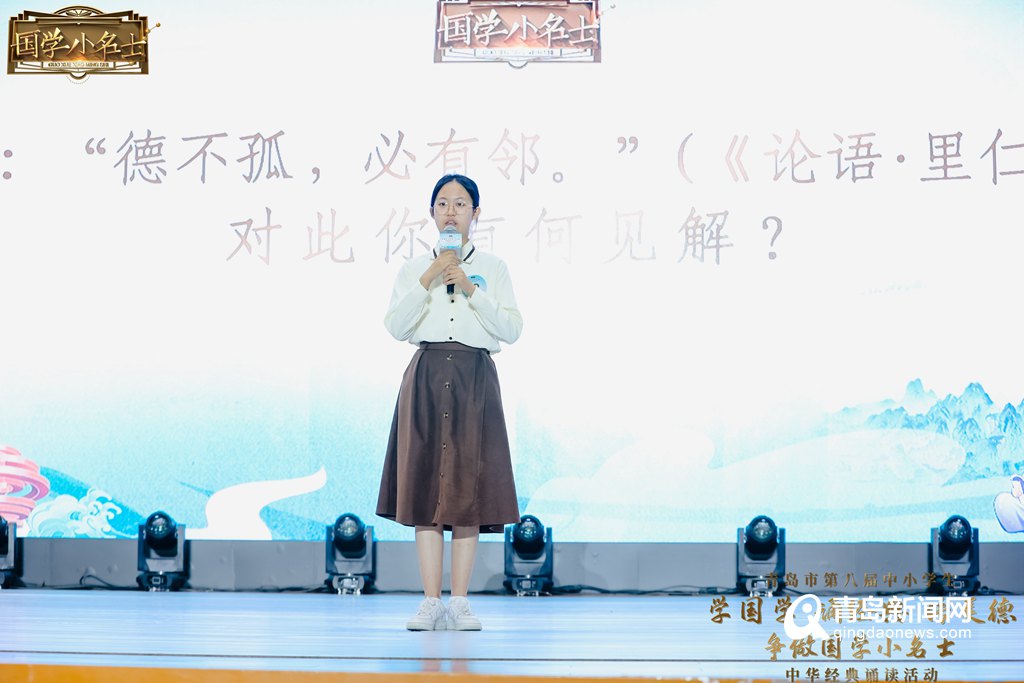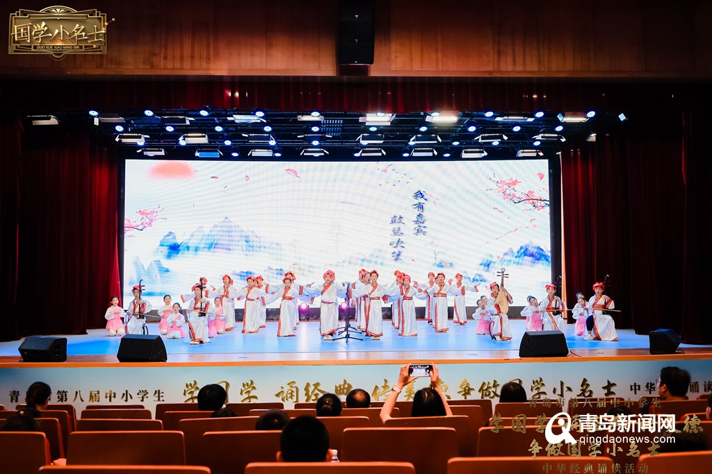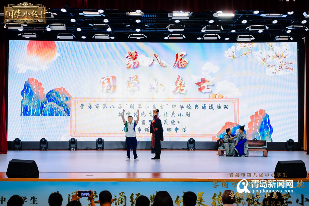 青島市中小學(xué)生“學(xué)國學(xué) 誦經(jīng)典 傳美德 爭做國學(xué)小名士”中華經(jīng)典誦讀活動(dòng)已成功舉辦8屆,全市中小學(xué)校高度重視、精心組織,國學(xué)學(xué)習(xí)熱情持續(xù)高漲。今年除了競賽活動(dòng),還增加了優(yōu)秀傳統(tǒng)文化情景小劇創(chuàng)作表演大賽、中華家庭詩詞擂臺(tái)賽、“詩潤萬家”系列活動(dòng)、“國學(xué)小名士”IP形象設(shè)計(jì)大賽、中華文化體驗(yàn)廊道誦讀打卡等互動(dòng)性更強(qiáng)、覆蓋面更廣、參與方式更加多元的活動(dòng)?;顒?dòng)現(xiàn)場還為情景小劇創(chuàng)作表演大賽獲獎(jiǎng)作品進(jìn)行了頒獎(jiǎng)。