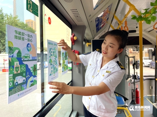 此外,志愿者們還在多條公交線路打造“綠色出行,美好生活”主題車廂。走進(jìn)主題車廂內(nèi)綠意盎然,“綠色出行、低碳生活”海報(bào)映入眼簾,車廂扶手處以及醒目位置均張貼“綠色出行”的標(biāo)語,讓市民在乘車的過程中耳濡目染,沉浸式呼吁大家加入綠色出行,保護(hù)環(huán)境的行列。
