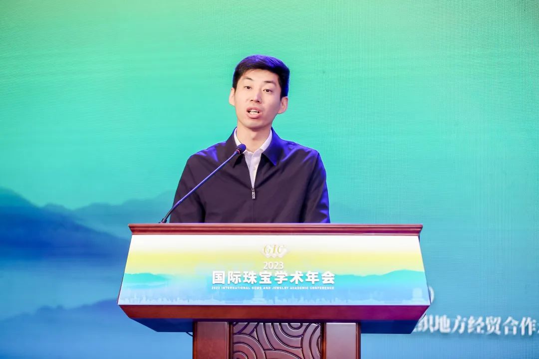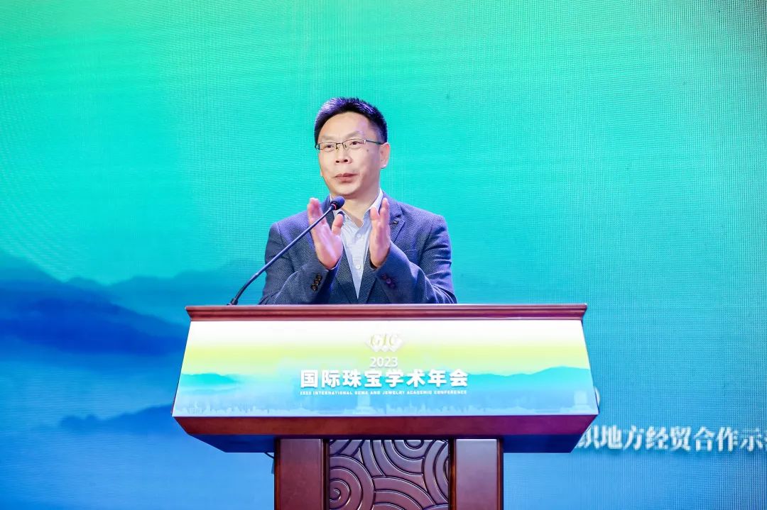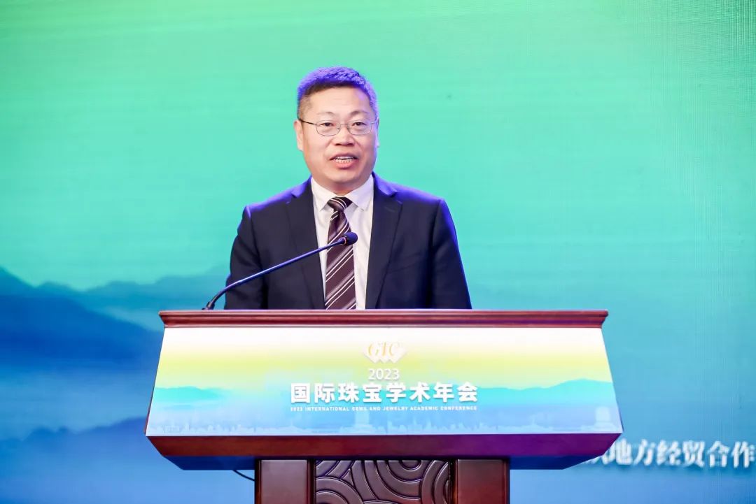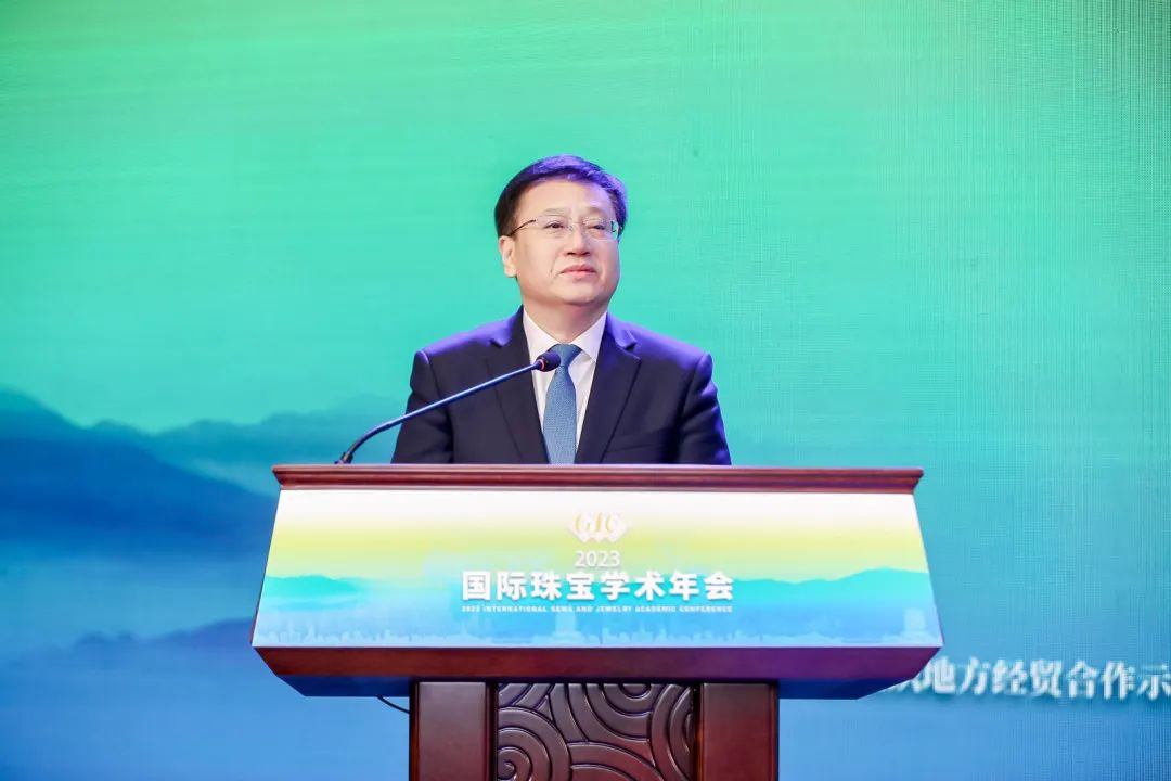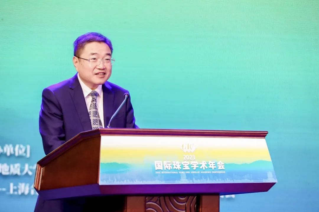 中國(guó)地質(zhì)大學(xué)(武漢)黨委副書記王甫宣布2023國(guó)際珠寶學(xué)術(shù)年會(huì)開幕