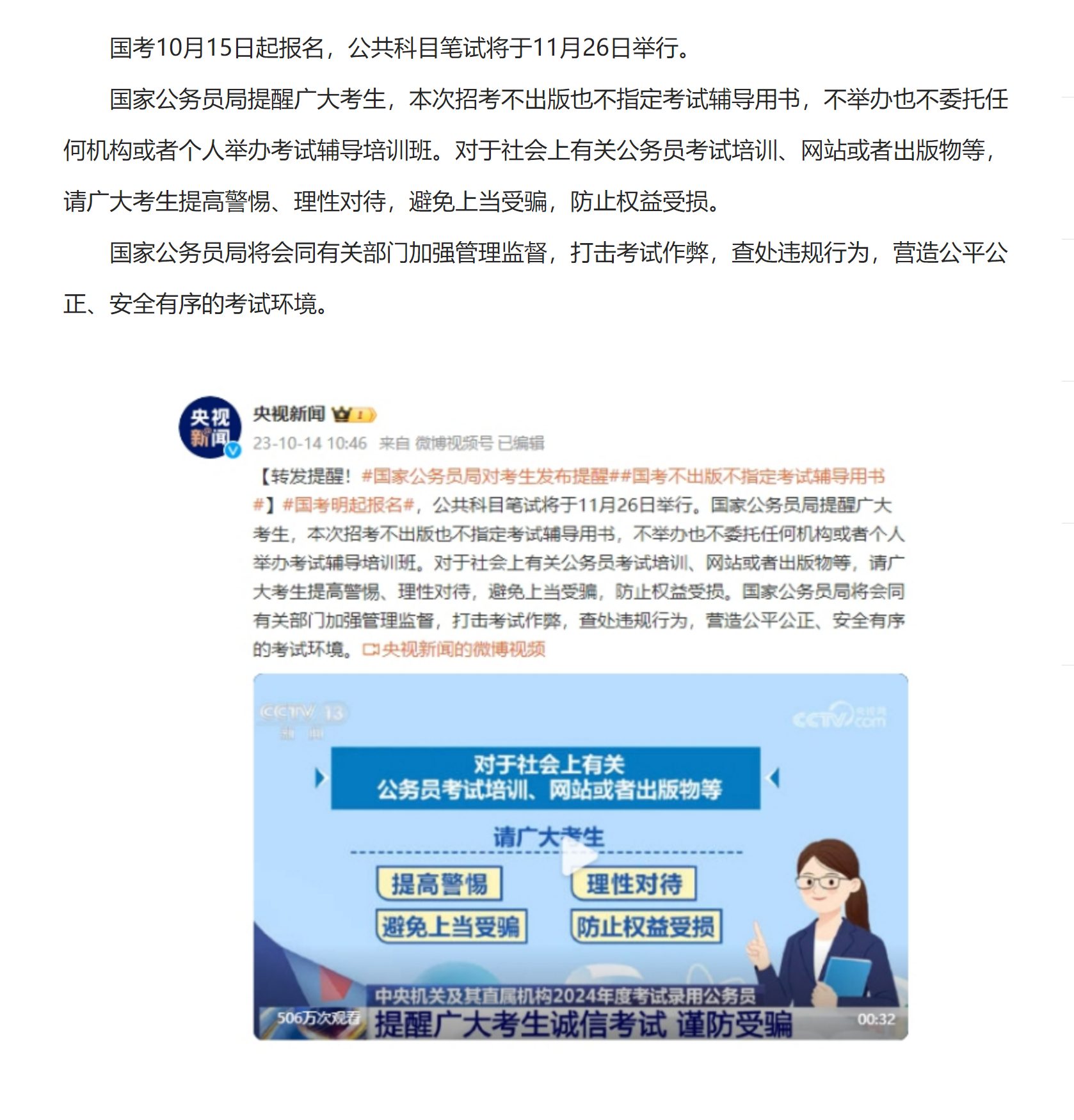國家公務(wù)員局提醒:國考不出版不指定考試輔導(dǎo)用書