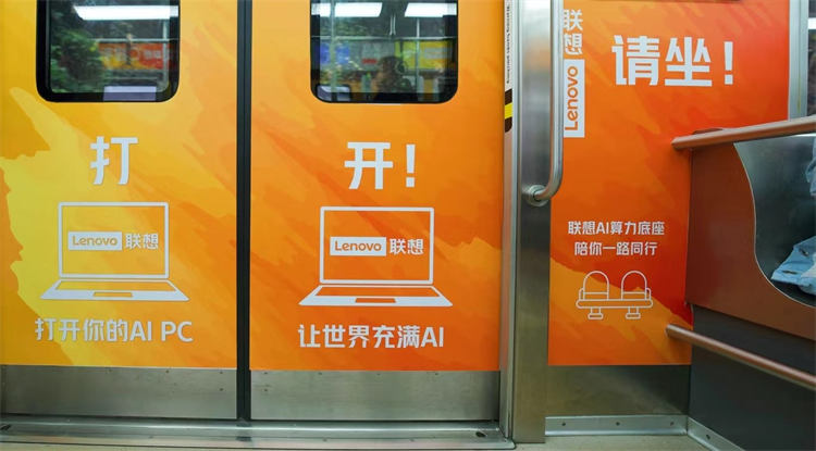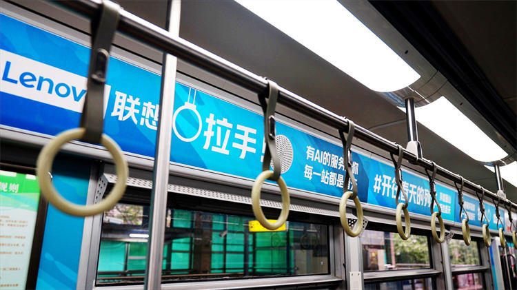 “聯(lián)想全棧智能,讓世界充滿AI,從春天開始”為主題的輕軌廣告在重慶輕軌2號線全新亮相