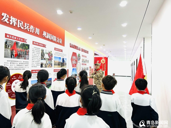 在城陽街道人民武裝部國防教育知識展示廳,城陽區(qū)紅色教育宣講員張周偉向參加活動的同學(xué)介紹了征兵體檢的相關(guān)流程,民兵隊伍是如何發(fā)揮突擊隊作用的,人民解放軍發(fā)展史、中國共產(chǎn)黨發(fā)展史以及城陽當?shù)氐母锩⒛?。學(xué)生們認真聽、仔細記、深刻悟,增強了愛國擁軍的意識,增強了報國衛(wèi)國的動力。