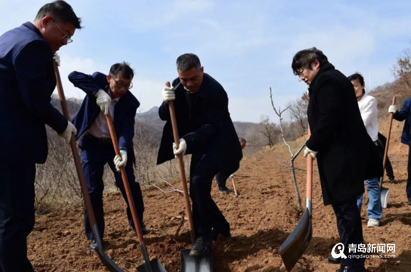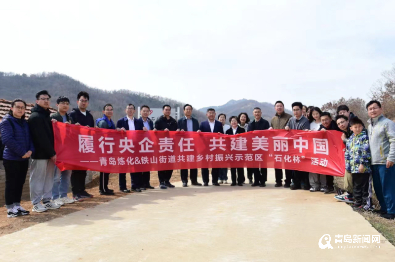 春回大地添新綠,植樹造林正當時。簽約儀式結(jié)束后,雙方人員來到鐵山街道后石溝村,共同種下75棵櫻桃樹,建起了第一片“石化林”,來自青島煉化機關(guān)部門以及青年志愿服務隊的30余人參與植樹活動,共同為美麗鄉(xiāng)村建設(shè)添加一抹綠色。參會人員還共同考察了楊家山里黃泥巷村容村貌及“鄉(xiāng)村會客廳”。
