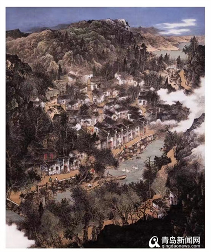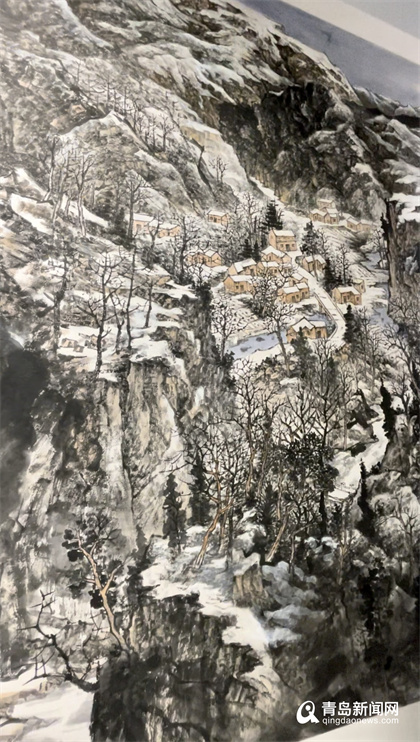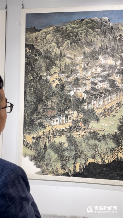 以畫為媒,架起兩地文化的交流與互鑒,也是此次李敦明畫展在青島舉行的目的之一。此次畫展策展人、大美墨韻美術(shù)館館長徐紹峰表示,此次在青島舉辦“李敦明山水畫精品展”,這不僅是兩地文化交流的一次重要盛事,更是對(duì)李敦明先生藝術(shù)成就的盛大展示。“李敦明先生作為中國當(dāng)代山水畫界的杰出代表,他的作品以深厚的藝術(shù)功底和獨(dú)特的審美視角,贏得了廣泛的贊譽(yù)。他的山水畫作,不僅展現(xiàn)了大自然的壯美與和諧,更融入了深厚的家國情懷和人文關(guān)懷,讓人感受到藝術(shù)的無窮魅力和深刻內(nèi)涵。”對(duì)此,李敦明表示,青島之美,得天獨(dú)厚,山、海、城融為一體,風(fēng)光絕倫,“每次來青寫生,都會(huì)住在嶗山,頗有些‘躲進(jìn)小樓成一統(tǒng)’的感覺,我對(duì)這里的每一塊石頭、每一片植被都很熟悉,這里也帶給了我很多的創(chuàng)作靈感。這次在青島舉行個(gè)人畫展,不僅僅是將我的畫作進(jìn)行展示,更想通過這次展覽,將我的家鄉(xiāng)之美介紹給青島的朋友。”基于此,李敦明在選擇展出作品時(shí),除了大幅國展作品外,還有更多的作品反映著他的家鄉(xiāng)大別山新縣革命老區(qū)鄉(xiāng)村巨變、繁榮富足、和諧美好、產(chǎn)業(yè)興旺的美好景象?!皟傻叵喔羟Ю?,但各具特色?!崩疃孛鞅硎荆M约旱漠嬚蛊鸬綊伌u引玉的作用,繼而帶動(dòng)兩地書畫家更多的交流互鑒,增強(qiáng)現(xiàn)代書畫藝術(shù)氛圍,拓寬學(xué)習(xí)交流渠道,展現(xiàn)不同藝術(shù)表現(xiàn)風(fēng)格與魅力,這對(duì)兩地的文化交流與提升必將產(chǎn)生積極和深遠(yuǎn)的影響。