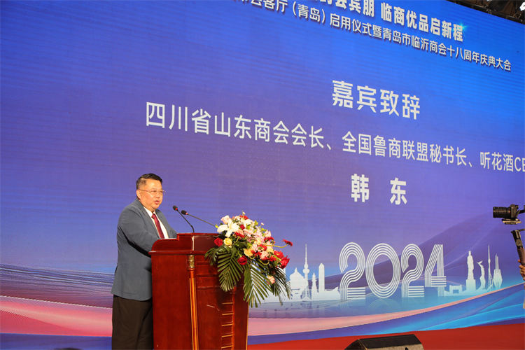 四川省山東商會(huì)會(huì)長(zhǎng)、全國(guó)魯商聯(lián)盟秘書(shū)長(zhǎng)、聽(tīng)花酒CE0韓東在致辭中表示:青島市臨沂商會(huì)是有理想、有溫度、有情懷、有擔(dān)當(dāng)?shù)纳虝?huì),是全國(guó)眾多臨商中的一面旗幟。祝青島市臨沂商會(huì)風(fēng)華正茂,前程似錦。