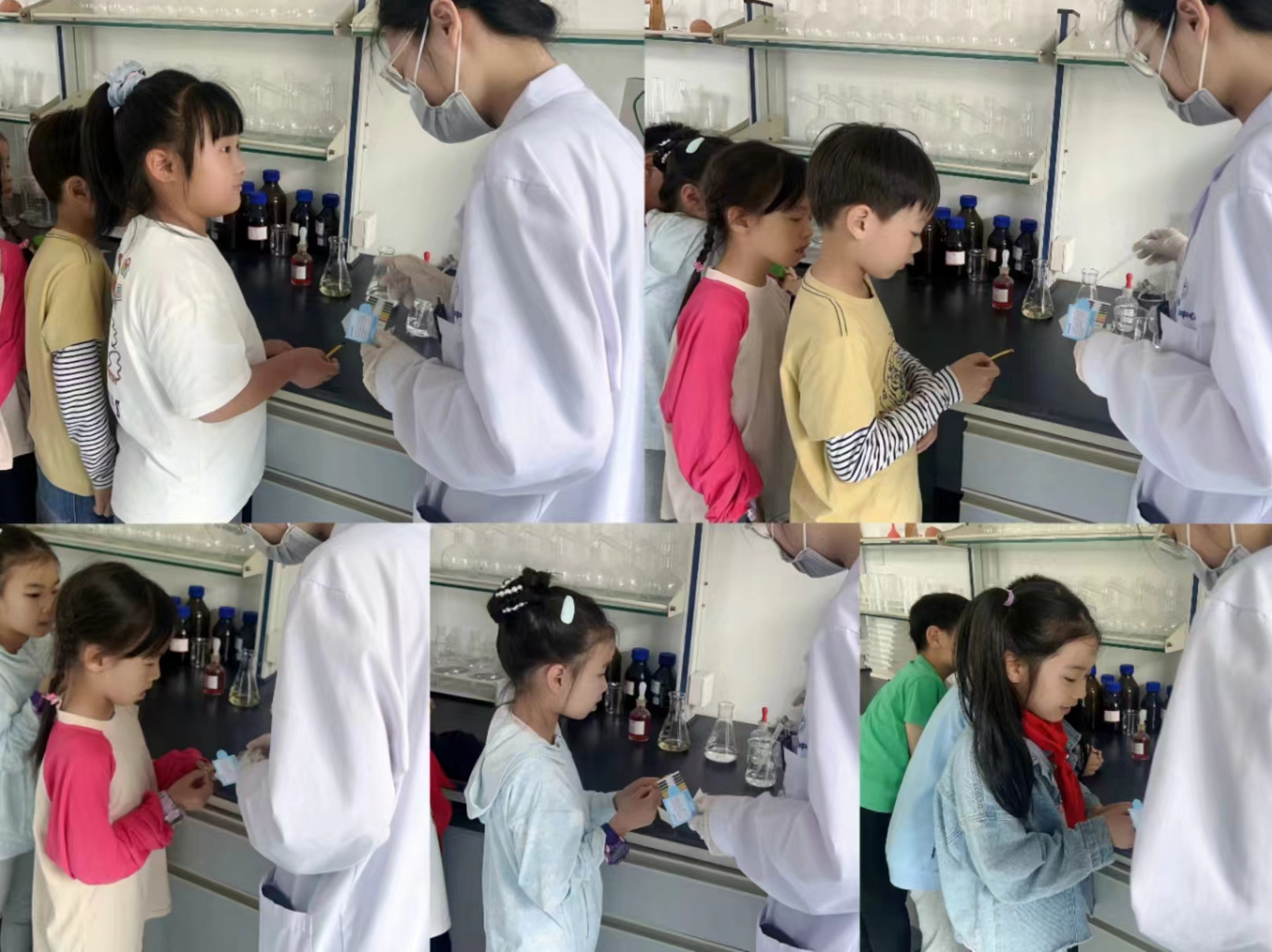 參觀完實(shí)驗(yàn)樓后同學(xué)們開始動手參與環(huán)??茖W(xué)實(shí)驗(yàn)。研究院實(shí)驗(yàn)人員分別用酚酞和甲基橙兩種試劑進(jìn)行酸堿中和變色實(shí)驗(yàn)的演示,隨后讓同學(xué)們逐一進(jìn)行體驗(yàn)。通過親手操作,同學(xué)們親眼見證了指示劑的變色過程,也掌握了如何用pH試紙判斷液體的酸堿性。這種直觀的實(shí)驗(yàn)現(xiàn)象讓他們對化學(xué)反應(yīng)產(chǎn)生了濃厚的興趣。