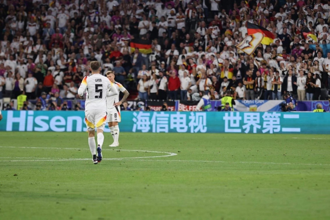 北京時間6月15日3:00,2024歐洲杯火熱開戰(zhàn),全世界的目光聚焦德國慕尼黑安聯(lián)球場。伴隨著德國隊與蘇格蘭隊的激烈拼搶,2024歐洲杯官方合作伙伴海信圍擋廣告“海信電視世界第二”十分搶眼。而在首場比賽中,海信顯示技術(shù)助力裁判給出本屆歐洲杯第一張紅牌判罰,向世界展現(xiàn)出全球第二的硬實力。