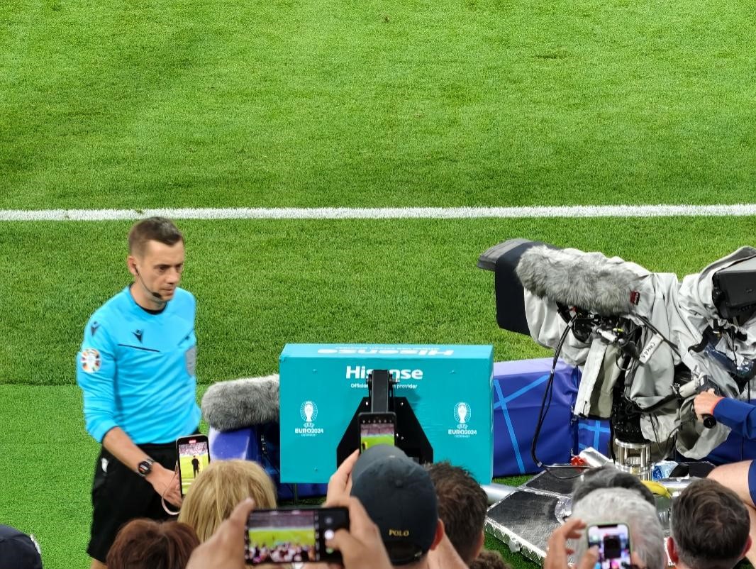 在官方贊助商身份之外,海信今年還作為2024歐洲杯VAR(視頻助理裁判)提供顯示技術(shù)支持,助力裁判做出更精準的判斷。在德國與蘇格蘭的首場比賽中,海信VAR助理裁判技術(shù)給出本屆歐洲杯第一張紅牌第一顆點球。這是歐足聯(lián)歷史上首次開放VAR顯示獨家權(quán)益,背后是海信50余年的顯示技術(shù)積淀。從品牌廣告到技術(shù)合作,海信已經(jīng)進入了全球化新階段,中國顯示技術(shù)在最嚴苛的場景中得到檢驗和認可。