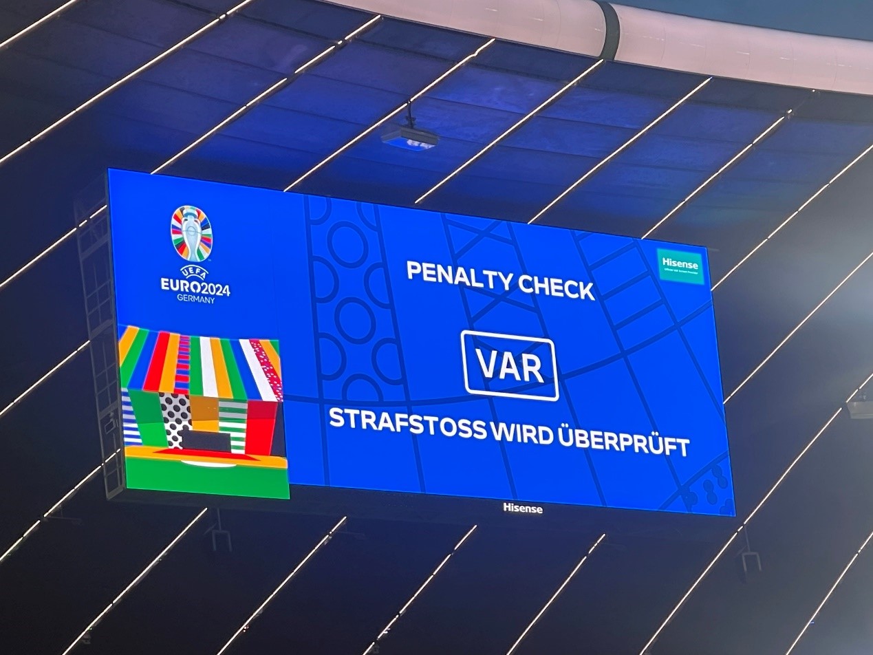 在德國(guó)與蘇格蘭的首場(chǎng)比賽中,海信VAR助理裁判技術(shù)給出本屆歐洲杯第一張紅牌第一顆點(diǎn)球。據(jù)了解,這是歐足聯(lián)歷史上首次開(kāi)放VAR顯示獨(dú)家權(quán)益,中國(guó)企業(yè)的顯示技術(shù)在最嚴(yán)苛的場(chǎng)景中得到檢驗(yàn)和認(rèn)可。