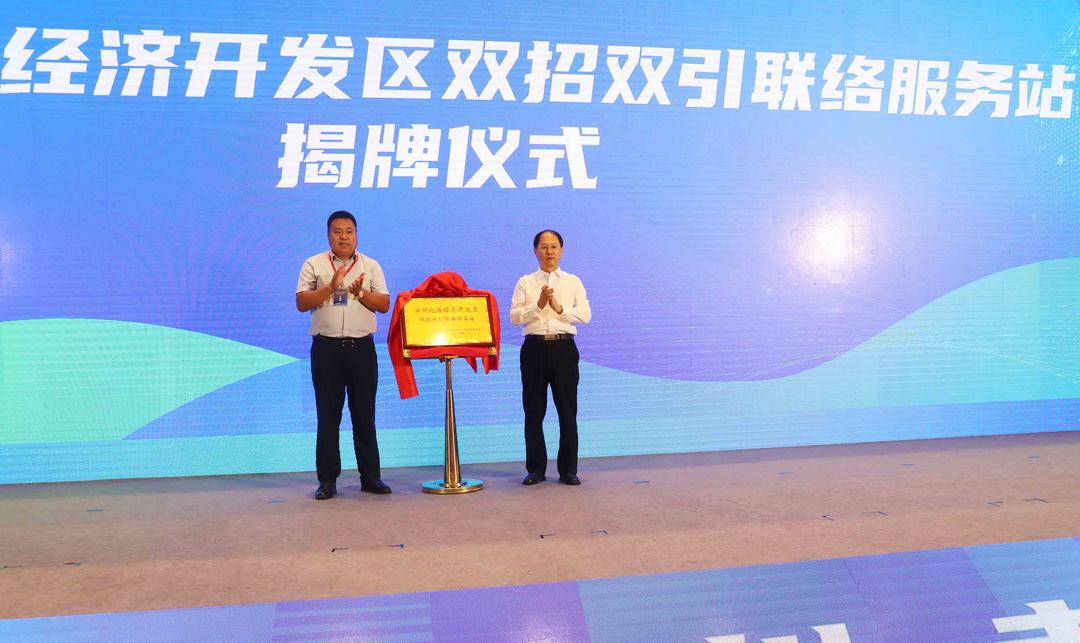 王道臣與李強(qiáng)共同為“濱州北海經(jīng)濟(jì)開發(fā)區(qū)雙招雙引聯(lián)絡(luò)服務(wù)站”揭牌。