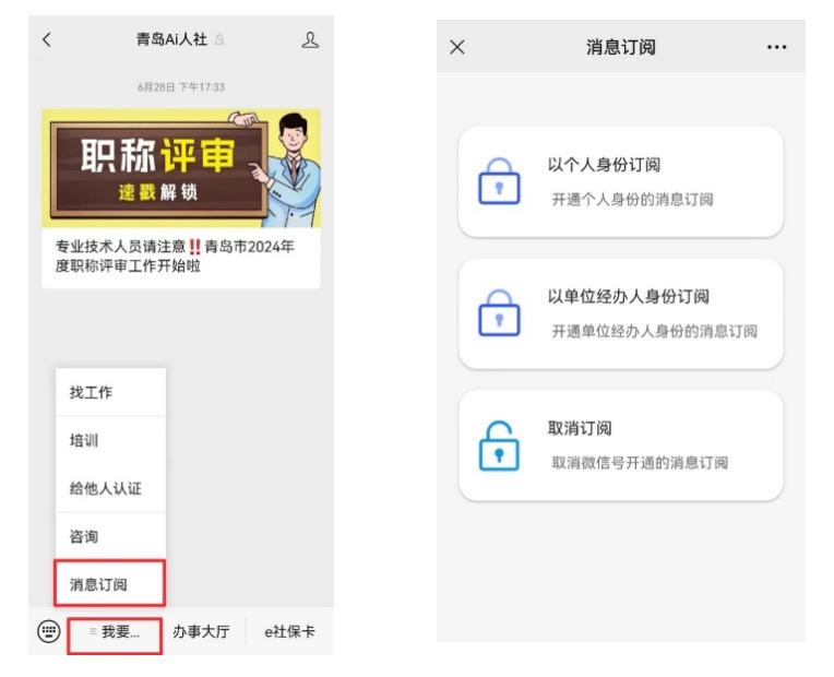 聚焦群眾切身利益,青島市人力資源和社會保障局從小切口、微服務入手,創(chuàng)新推出“社保相伴”業(yè)務消息提醒服務,根據參保人的年齡、參保狀態(tài)、累計繳費年限等信息,通過大數據比對分析,將群眾關心關注的社保權益信息,定制化、精準化推送給本人,更好地維護參保人的社會保險知情權和參與權。參保企業(yè)和個人登錄“青島Ai人社”微信公眾號并關注后,點擊左下角的“我要……”、點擊“消息訂閱”,選擇訂閱方式并驗證后,即可享受“隨身秘書”般的貼心提醒服務。