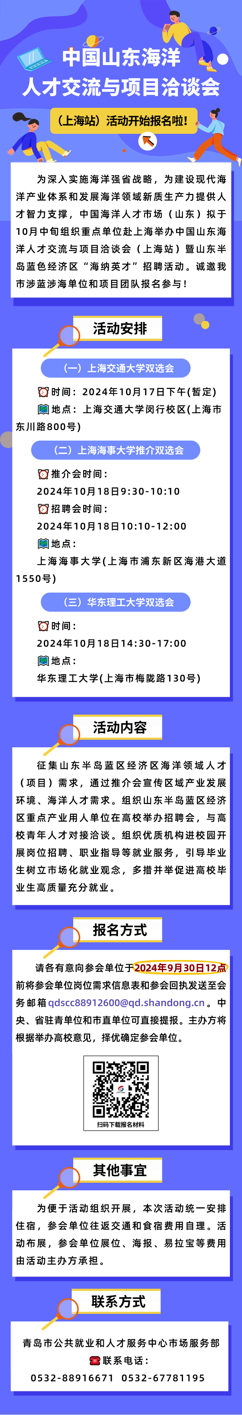 中國山東海洋人才交流與項目洽談會(上海站)活動開始報名啦!