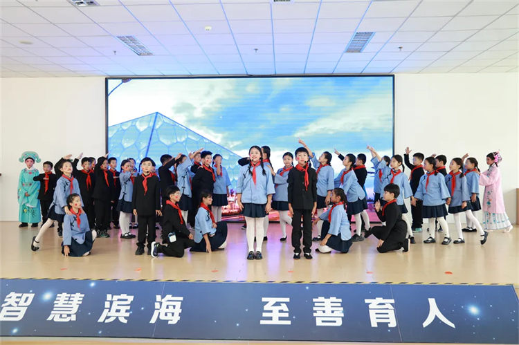 五年級的同學在舞臺上自信滿滿,清脆的童聲和曼妙的琴音不絕于耳,精彩的表演中洋溢著對家國的熱愛和祝福。精彩絕倫的表演,展現(xiàn)出了各班同學們良好的藝術(shù)素養(yǎng)和審美水平,充分體現(xiàn)了“班班有特色”的藝術(shù)氛圍,展現(xiàn)了我?!笆畟€一”工作的高質(zhì)量推進。在家校合力的共同努力下,各班同學以鏗鏘有力的吟誦來贊頌祖國偉大、壯麗、富強的面貌,以清脆嘹亮的歌聲抒發(fā)中華少年的愛國情懷,為我們帶來了一場視覺與聽覺的盛宴。