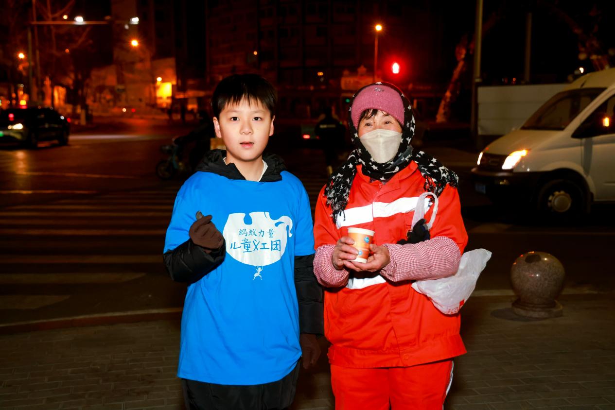 現(xiàn)場志愿者大多是青少年和家長們,家長們頂著寒風(fēng),以身作則言傳身教,讓孩子們了解城市街頭早起勞動(dòng)的戶外工作者,感悟生活艱辛,學(xué)會(huì)感恩生活,用實(shí)際行動(dòng)表達(dá)對他們的尊重與感激。