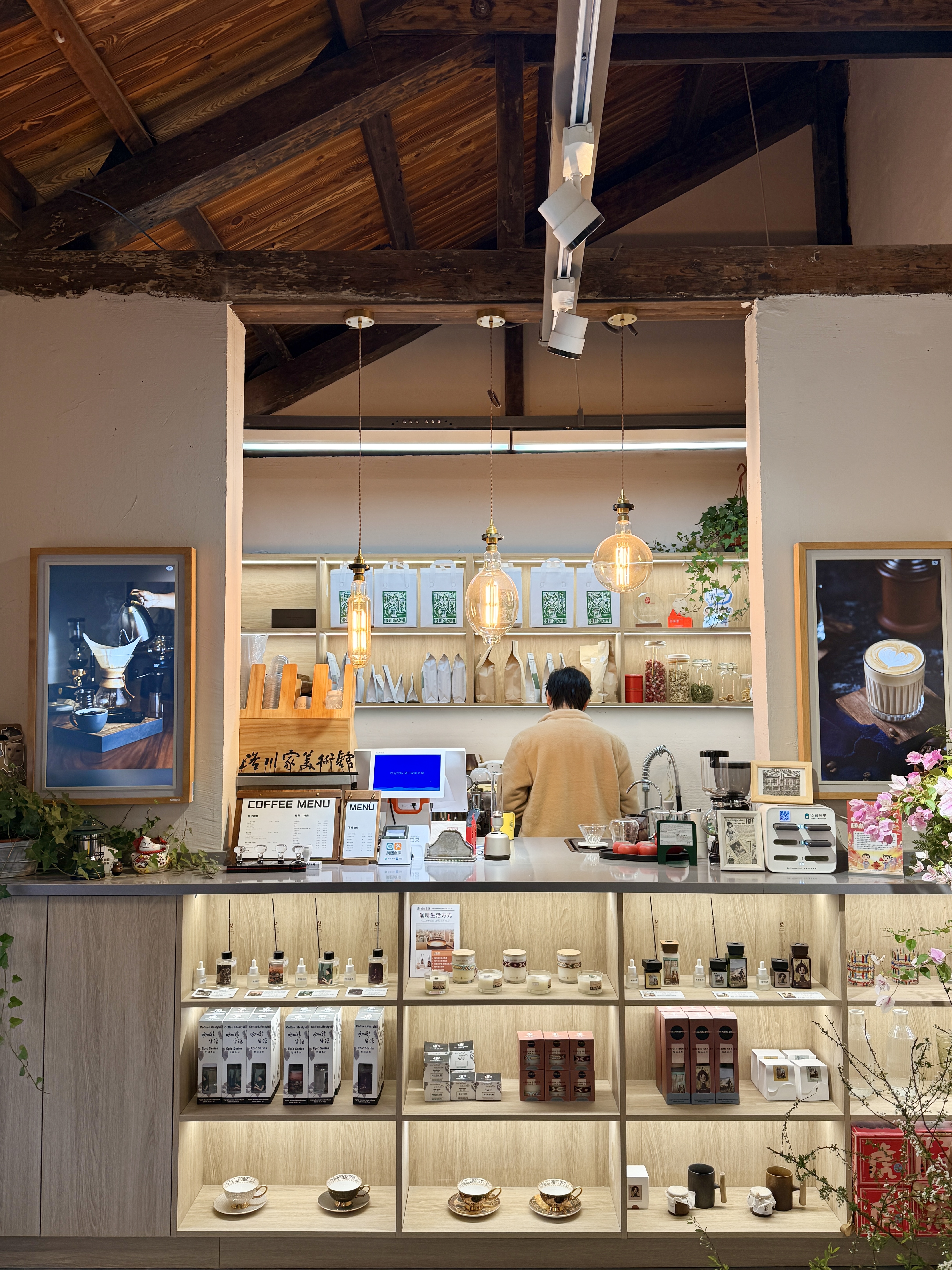 由拱形門進入,映入眼簾的是一個精致的小花園,在冬日里透露著一抹淡淡綠意,院子一側(cè)就是洛川家咖啡,藝術(shù)、歷史與咖啡在這里聚合碰撞,墻上的每一幅畫都出自藝術(shù)大家之手,既是裝飾品也可以售賣,咖啡口感也是可圈可點,口感柔和的美式、層次分明的手沖、冬季特推暖手更暖心的拿鐵,搭配精致拉花,用心呈現(xiàn)給每一位顧客。