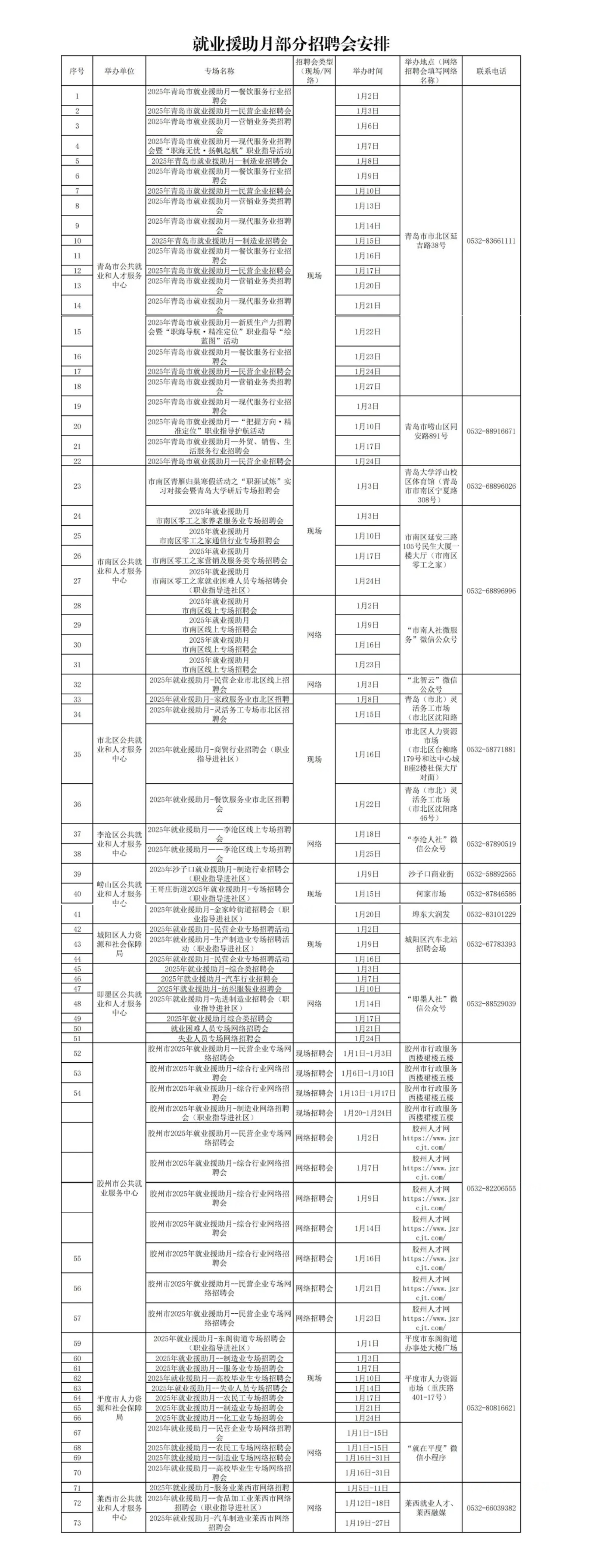 收集一批就業(yè)崗位。支持社會責任感強的企業(yè)設立低門檻、有保障的崗位,可到各級公共就業(yè)服務機構登記招聘信息,也可登錄青島人才網(wǎng),在招聘e站板塊自主發(fā)布招聘需求,還可報名參加全市各級公共人力資源市場線下招聘活動。