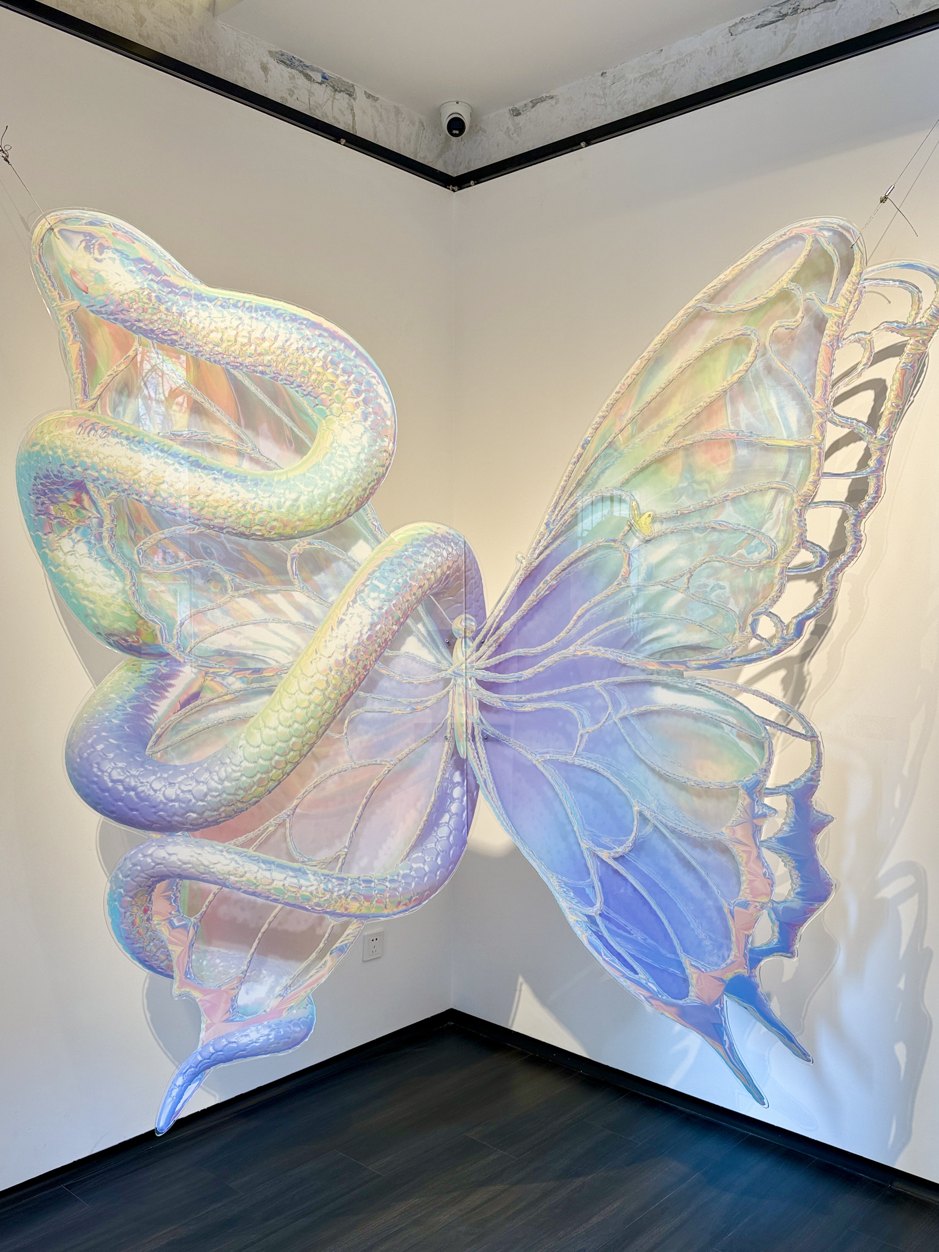 銀魚巷博物館內,正上演著一場關于美麗與重生的奇跡,超大的鮮花蝴蝶裝置,七位藝術巨匠,以靈動的筆觸和創(chuàng)意共同編織了一個關于蝴蝶的夢幻世界。