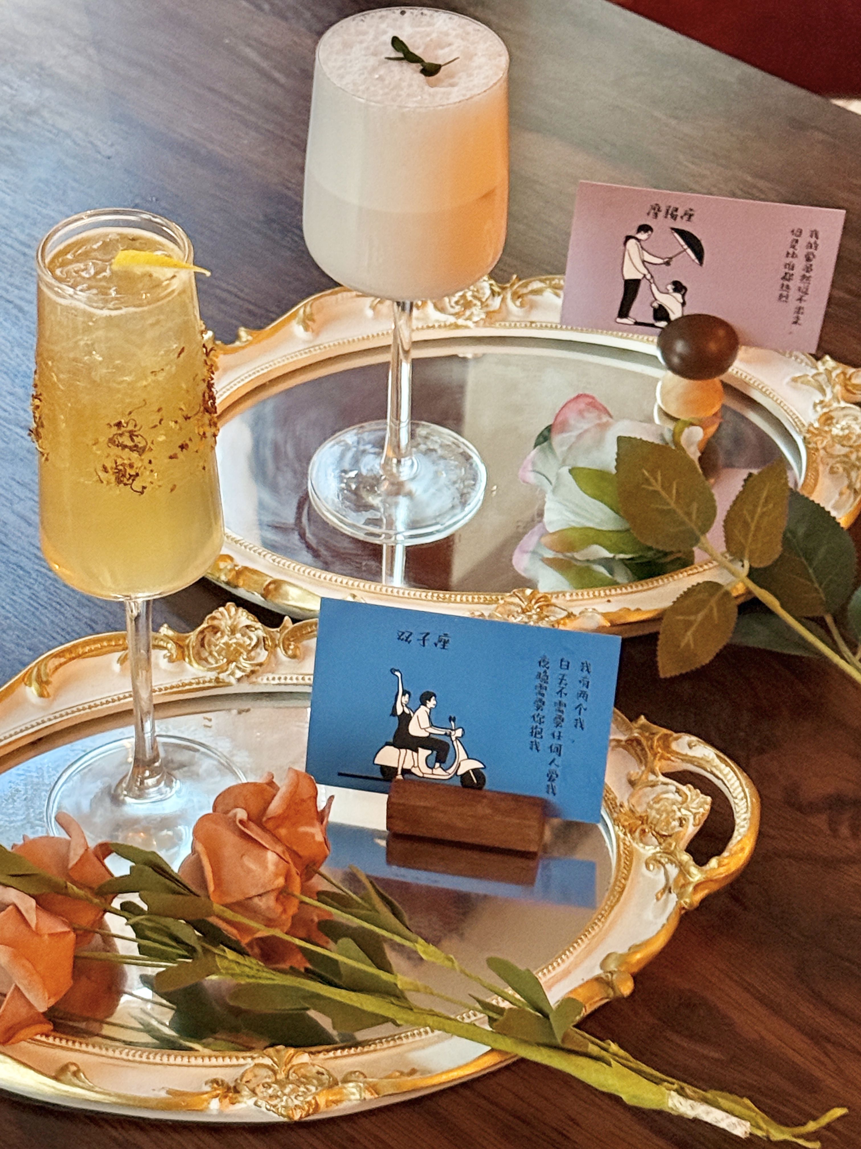 6杯獨(dú)美的小酒,每一杯都是精心調(diào)制,每一口微醺都是驚喜。還有星座特調(diào),每一杯星座酒都對應(yīng)不同的故事,像開盲盒一樣,調(diào)酒都能喝出花來interesting!
