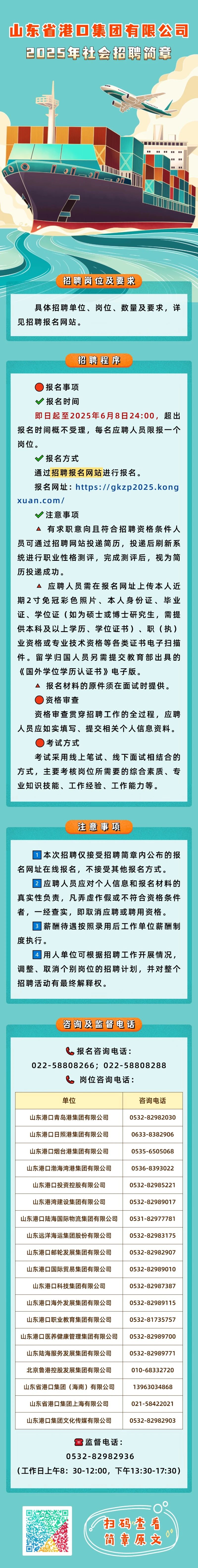 山東省港口集團(tuán)2025年社會(huì)招聘來(lái)啦??