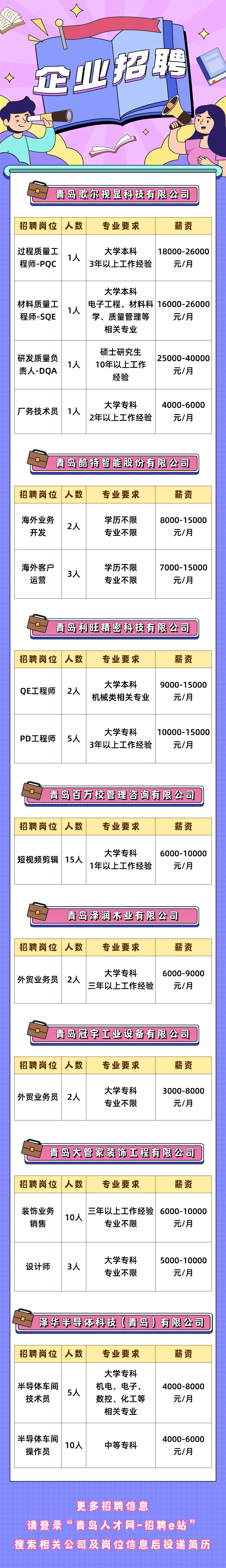 企業(yè)招聘??部分崗位不限專(zhuān)業(yè)、不限學(xué)歷