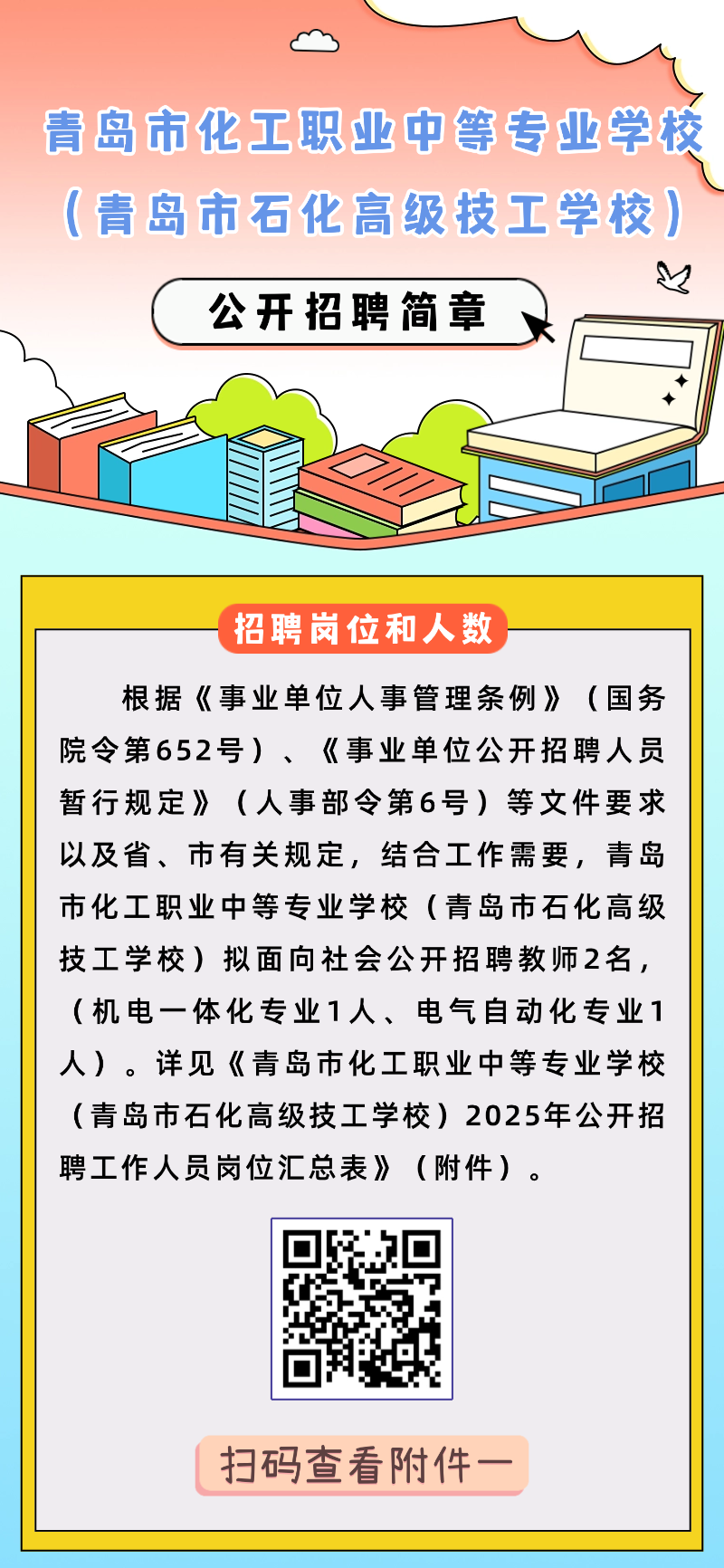 事業(yè)編??報(bào)名中??青島市化工職業(yè)中等專(zhuān)業(yè)學(xué)校公開(kāi)招聘