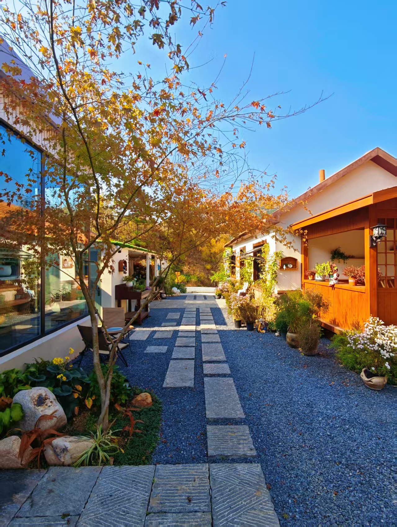即使現(xiàn)在已是11月份深秋,山朵仍花團(tuán)錦簇,如莫奈花園般浪漫,美成油畫。
