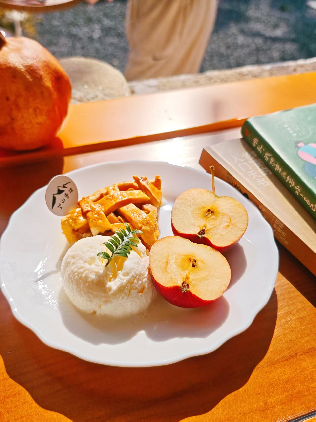 主理人說“因?yàn)閻鄢蕴鹌?,所以學(xué)了烘焙”,這執(zhí)念也太可愛了,所有甜品都是現(xiàn)做的,巴斯克綿到心巴上,可頌脆到掉渣,秋日王炸必須是手作蘋果派!本地糖心蘋果 + 黃油千層酥皮,咬一口全是果香,配氣泡水+咖啡絕了!