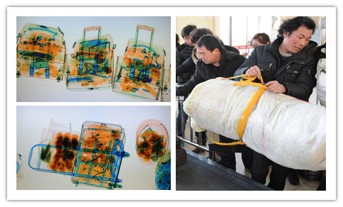 在青島火車站的東候車廳安檢處,一排排大小材質(zhì)不同的行李被輸送進安檢通道,接受X光線檢查。隨著2014年春節(jié)的臨近,青島火車站、青島各汽車站候車廳的旅客越來越多,安檢處壓力也越來越大。