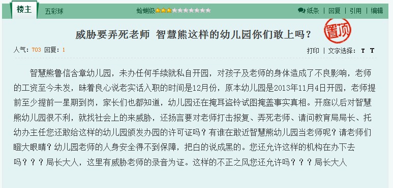 智慧熊魯信含章幼兒園,未辦任何手續(xù)就私自開園,對孩子及老師的身體造成了不良影響,老師的工資至今未發(fā),這樣的幼兒園,您敢讓孩子去嗎?...... [詳情]