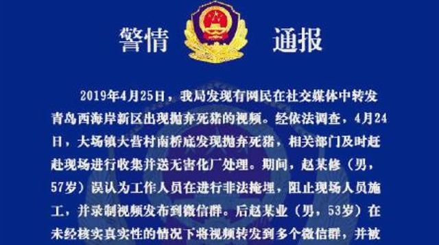 辟謠丨網(wǎng)傳青島河邊有人拋棄死豬?散布謠言者已被拘留