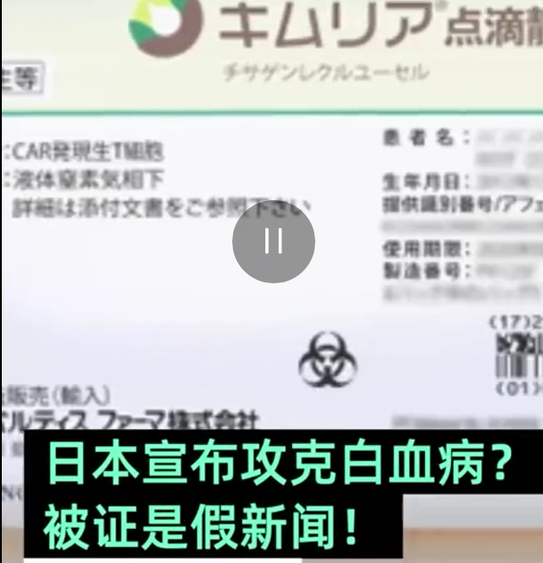 日本制藥公司新藥可以攻克白血病?假新聞!