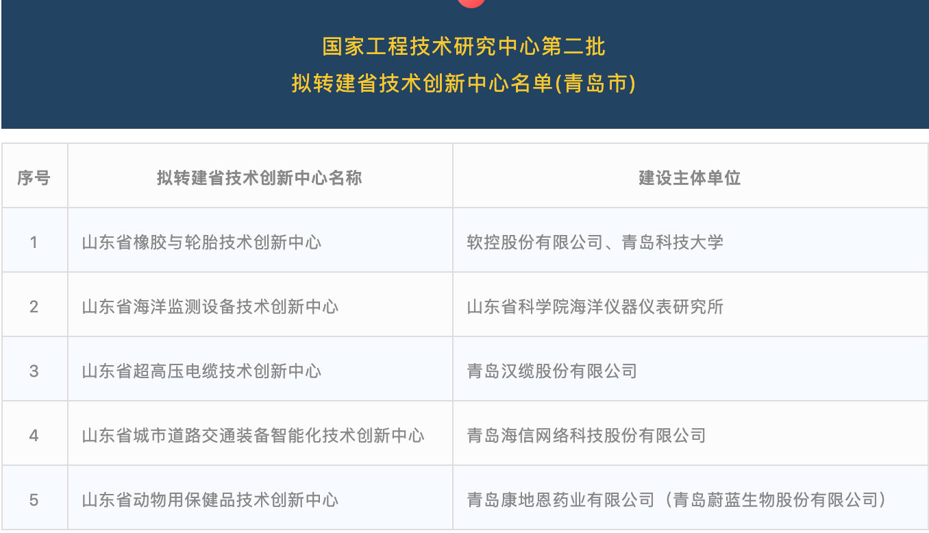 青島5個(gè)國家工程技術(shù)研究中心擬獲轉(zhuǎn)建省技術(shù)創(chuàng)新中心