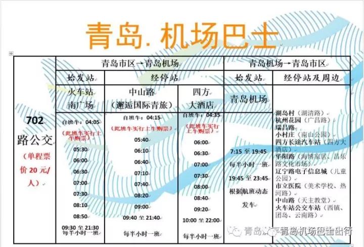 起點:青島國際機場 終點:青島粵海酒店 發(fā)車時間:08:00—18:00每小時一班,20:00和22:00各一班...[詳情]