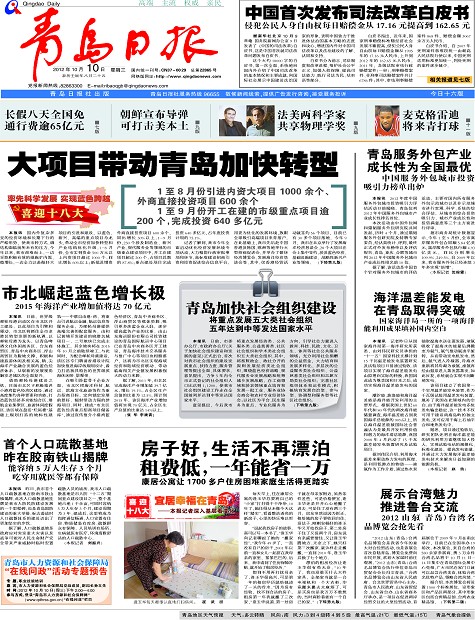 “十一五”期間,我市緊緊圍繞實(shí)施“環(huán)灣保護(hù)、擁灣發(fā)展”戰(zhàn)略、舉辦北京奧運(yùn)會帆船比賽、應(yīng)對國際金融危機(jī)沖擊以及一批事關(guān)青島長遠(yuǎn)發(fā)展的重點(diǎn)項(xiàng)目等,積極整合各類宣傳載體,廣泛開拓宣傳渠道,大力加強(qiáng)城市宣傳推介,...[詳情]